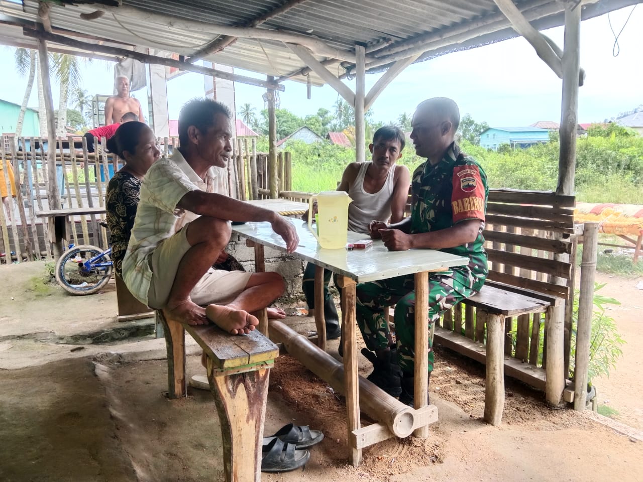 TAPTENG _Babinsa Koramil 03/Pandan Kodim 0211/TT, Kopka Emerson Hutabarat melaksanakan komunikasi sosial dengan Warga desa binaan yang bertempat di Kelurahan Sibuluan Indah Kecamatan Pandan Kabupaten Tapanuli Tengah. Selasa (05/08/2025)