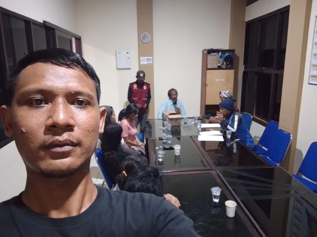 Kelima orang yang terjaring razia dibawa ke kantor kecamatan untuk di data.