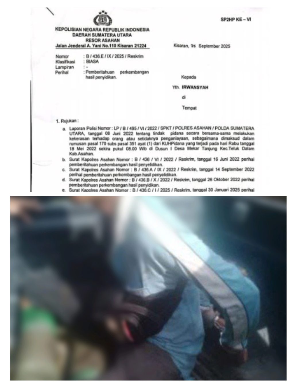 Detik24jam,Asahan Sumatera Utara – Irwansyah (50), seorang warga Dusun I, Desa Mekar Tanjung, Kecamatan Teluk Dalam, Kabupaten Asahan, Sumatera Utara, hingga kini masih menanti keadilan atas kasus dugaan pengeroyokan yang dialaminya tiga tahun lalu. Kasus tersebut baru naik ke tahap penyidikan dan penetapan tersangka pada tahun 2025, meskipun laporan telah dibuat sejak 2022.