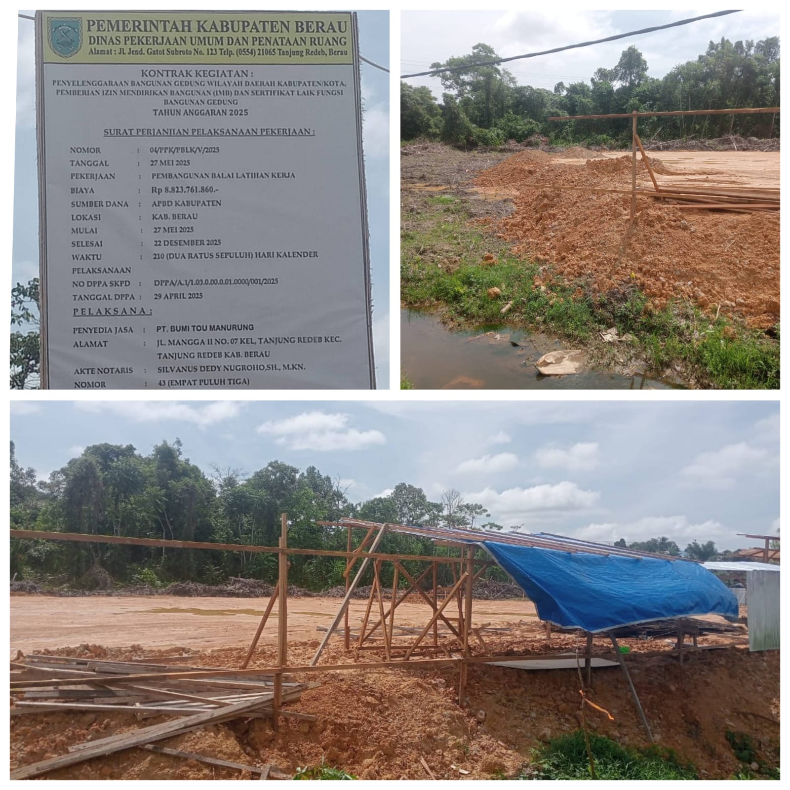 Berau Kalimantan Timur – PT Bumi Toa Manurung selaku pelaksana kegiatan konstruksi Pembangunan balai latihan kerja di wilayah limujan kecamatan sambaliung kabupaten Berau Kalimantan Timur senilai Rp8,,823,761,Miliyar nampaknya bakal berpotensi bermasalah dengan hukum-di Karana kan mengunakan material tanah urukan dari penambang tanah yang tidak memiliki perizinan lengkap diduga ilegal.