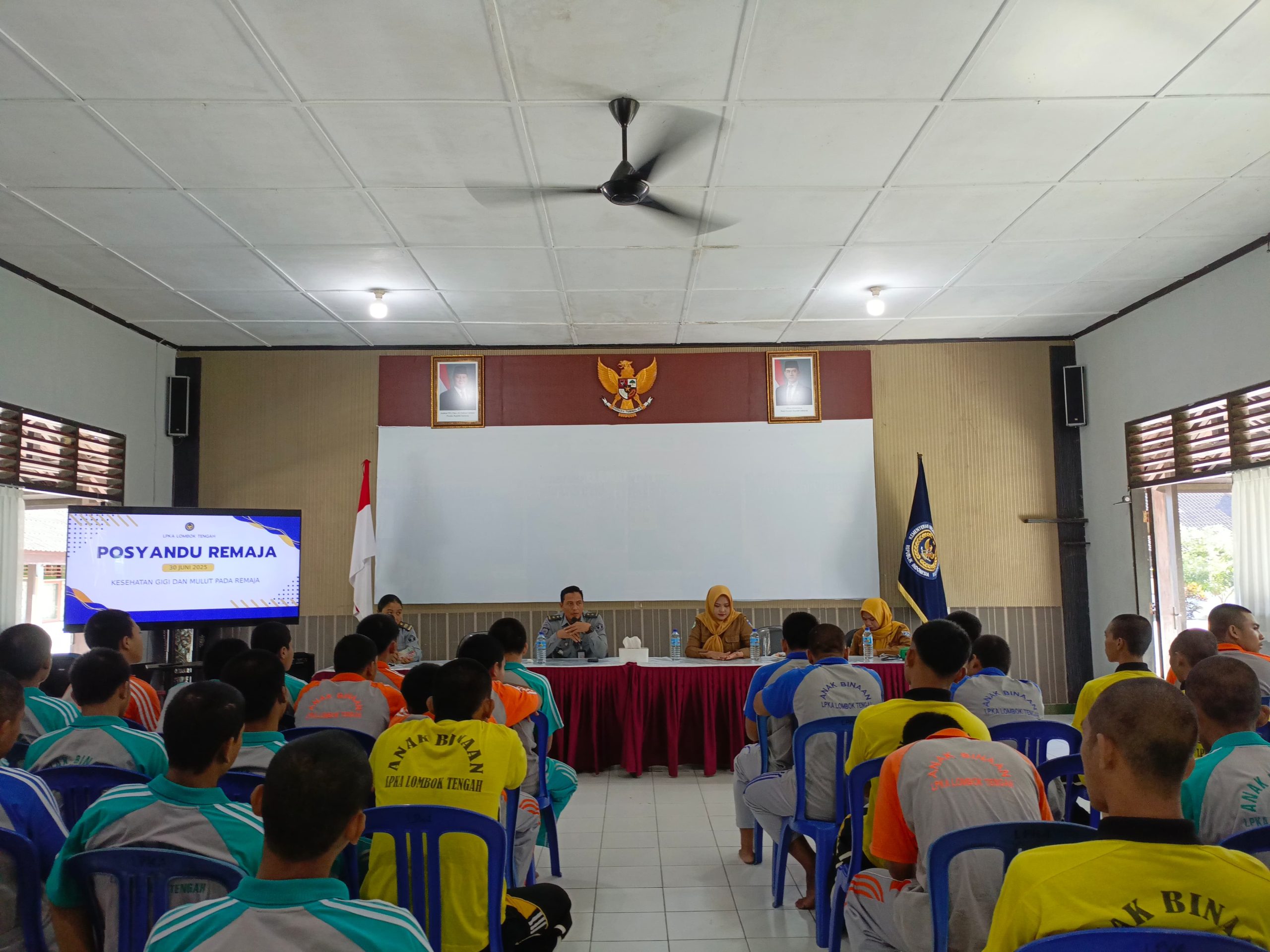 Lombok Tengah – Kegiatan Posyandu Remaja rutin dilaksanakan di LPKA Lombok Tengah dengan tema kesehatan gigi dan mulut. Kegiatan yang diikuti oleh Anak Binaan ini berlangsung dengan semangat dan antusiasme tinggi dalam rangka meningkatkan kesadaran pentingnya menjaga kesehatan gigi dan mulut sejak dini.