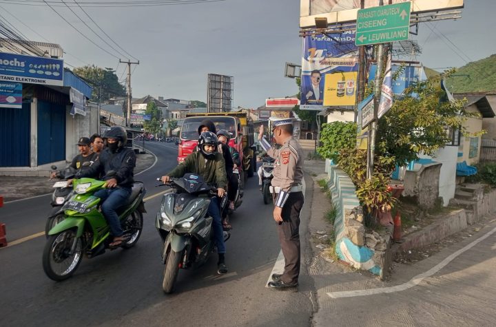 Anggota Polsek Ciampea Polres Bogor Laksanakan Pengaturan Lalu Lintas Pagi Hari