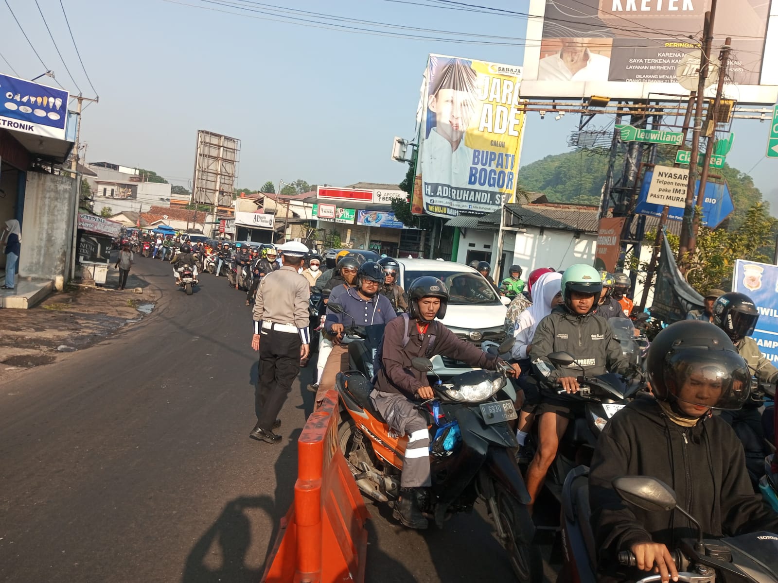 Anggota Polsek Ciampea Polres Bogor Laksanakan Kegiatan Pengaturan lalu lintas