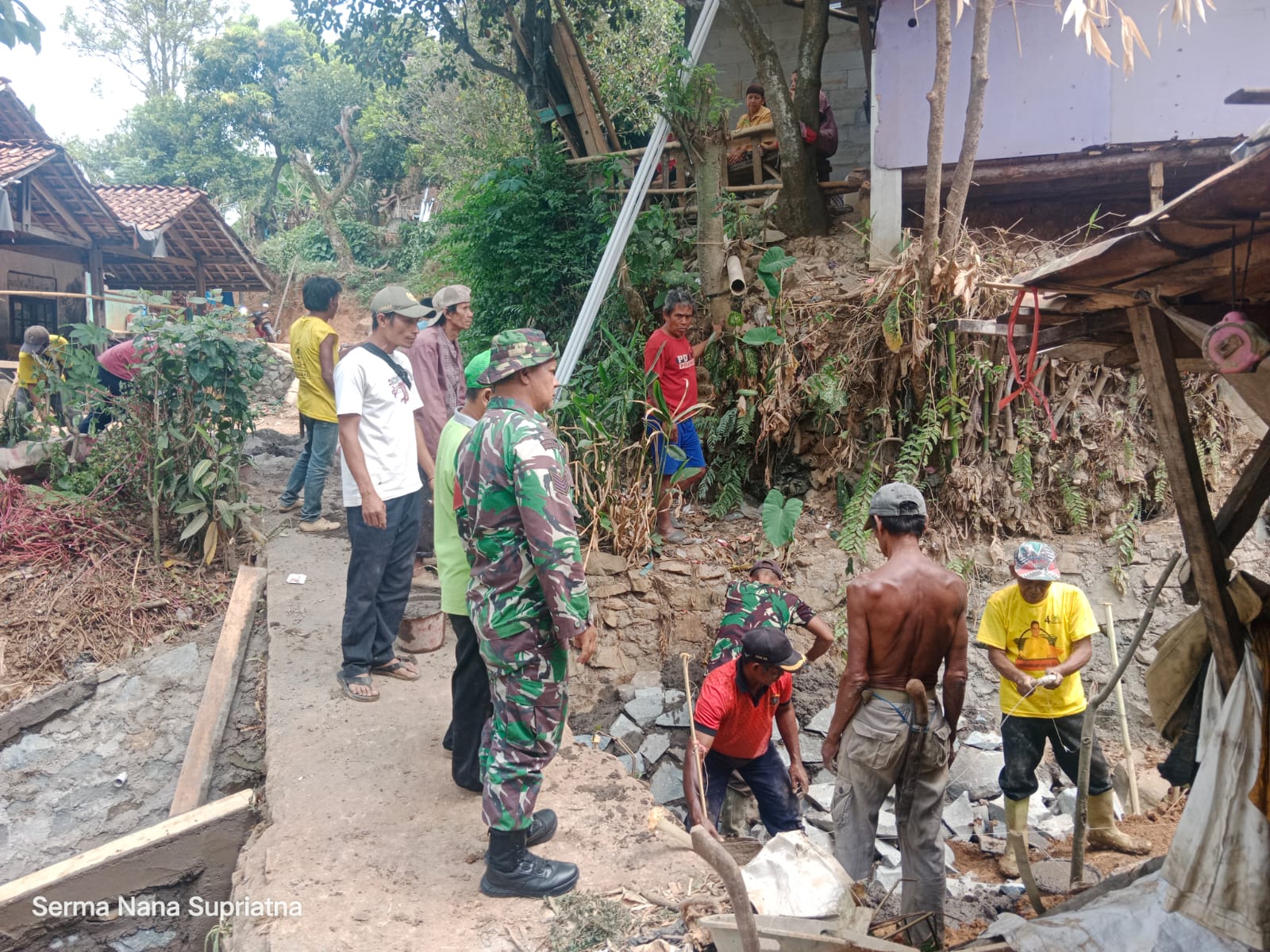 Detik24jam.com- Tanjungsari Botim| Jaga kondusifitas pengerjaan pembangunan Tembok Penahan Tanah (TPT) di Desa binaan Serma , Nana Supriatna babinsa Desa Buanajaya laksanakan giat pemantauan sekaligus karya bakti.