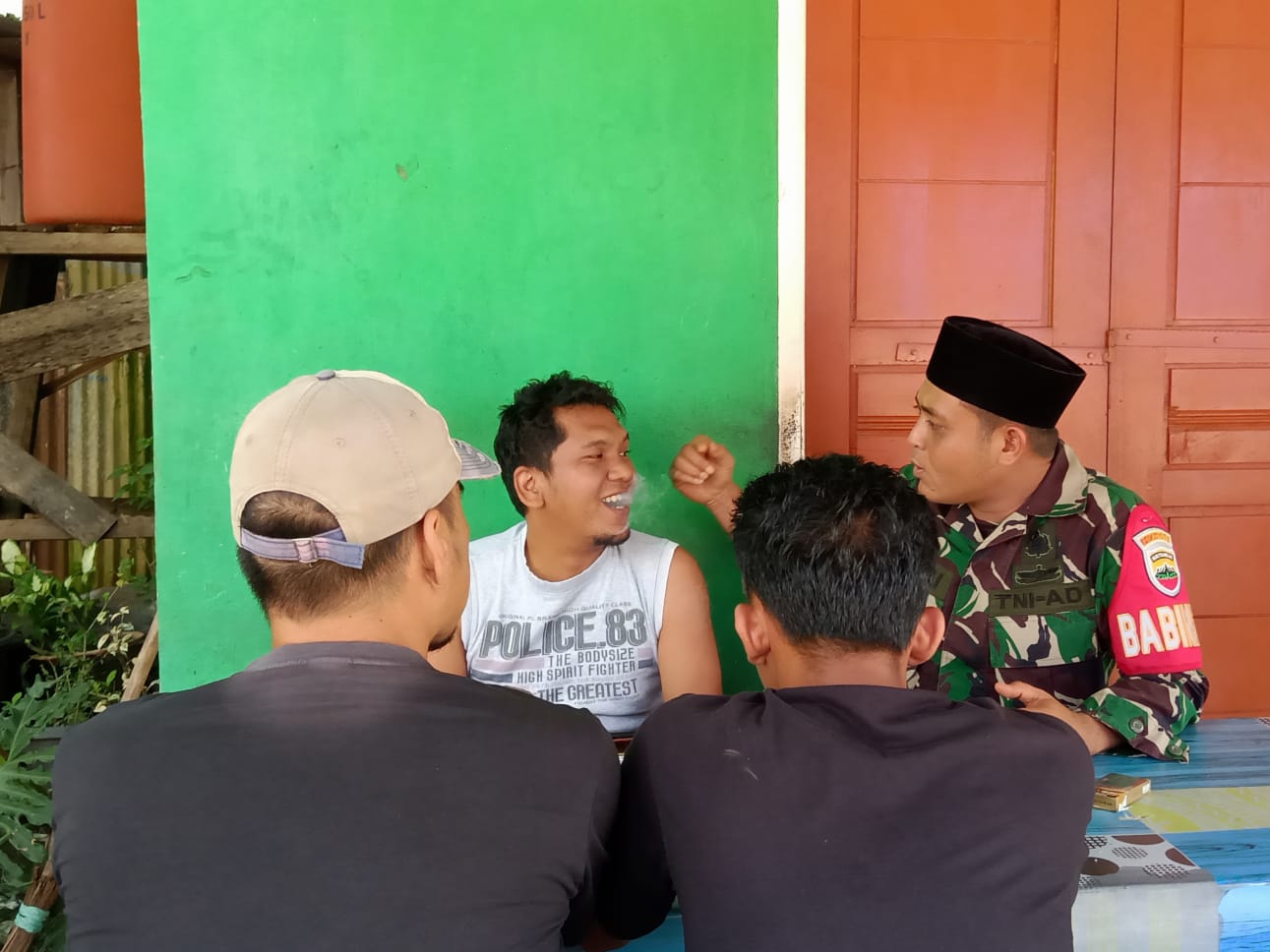 TAPTENG_ Babinsa Koramil 01/Barus jajaran Kodim 0211/TT Kopda Hakiki Perdana Giat melaksanakan Komunikasi Sosial (Komsos) bersama masyarakat Di dusun II desa pasar terandam kecamatan Barus Kabupaten Tapanuli Tengah, dengan tujuan menciptakan kedekatan bersama warga binaan, Rabu (04/06/2025).