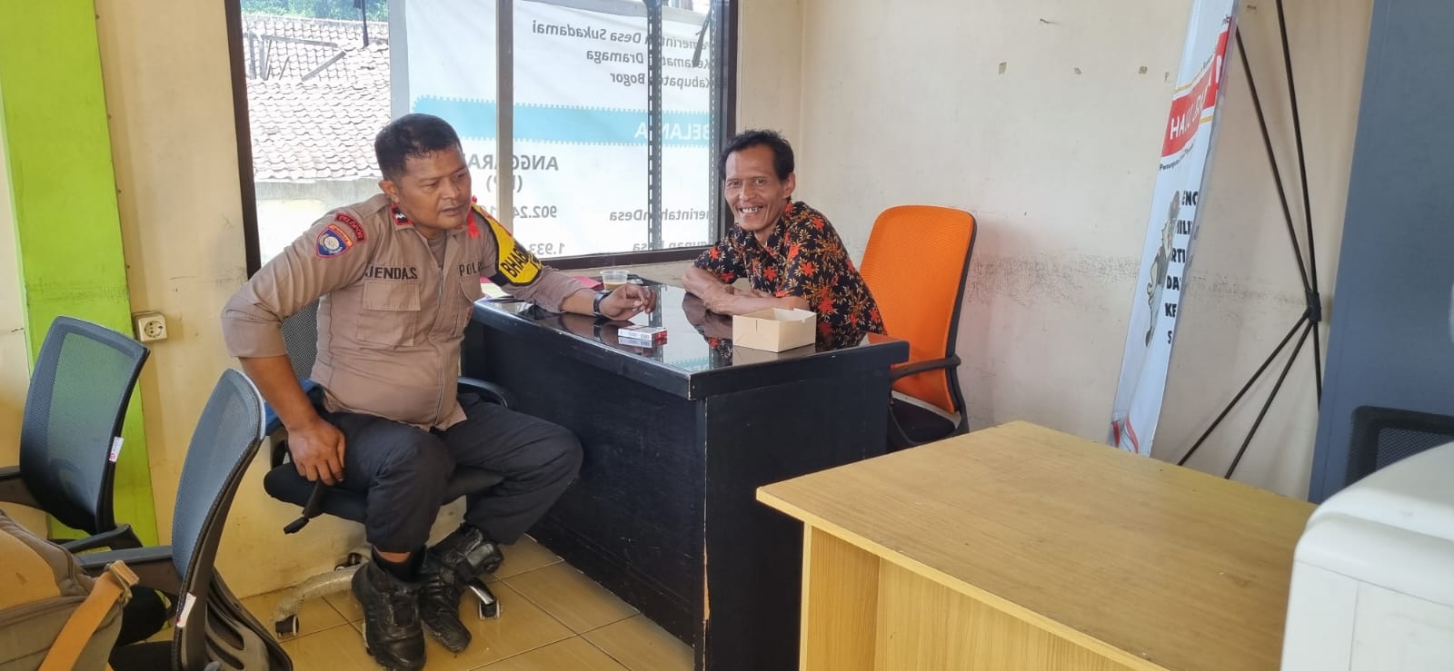 Detik24jam.com – POLRES BOGOR| Bhabinkamtibmas Polsek Dramaga Polres Bogor Polda Jabar Aipda Jenda MK menyambangi Instansi Kantor Desa Sukadamai Kecamatan Dramaga Kabupaten Bogor. Kegiatan sambang ini akan menjadi rutinitas untuk mendekatkan diri dengan para staf instansi agar para staf Desa lebih melayani masyrakat dalam mengurus administrasi warga dan keperluan lainnya. deteksi dini dalam rangka pemeliharaan kamtibmas di wilkum Polsek Dramaga Hari Rabu. (14/05/2025).