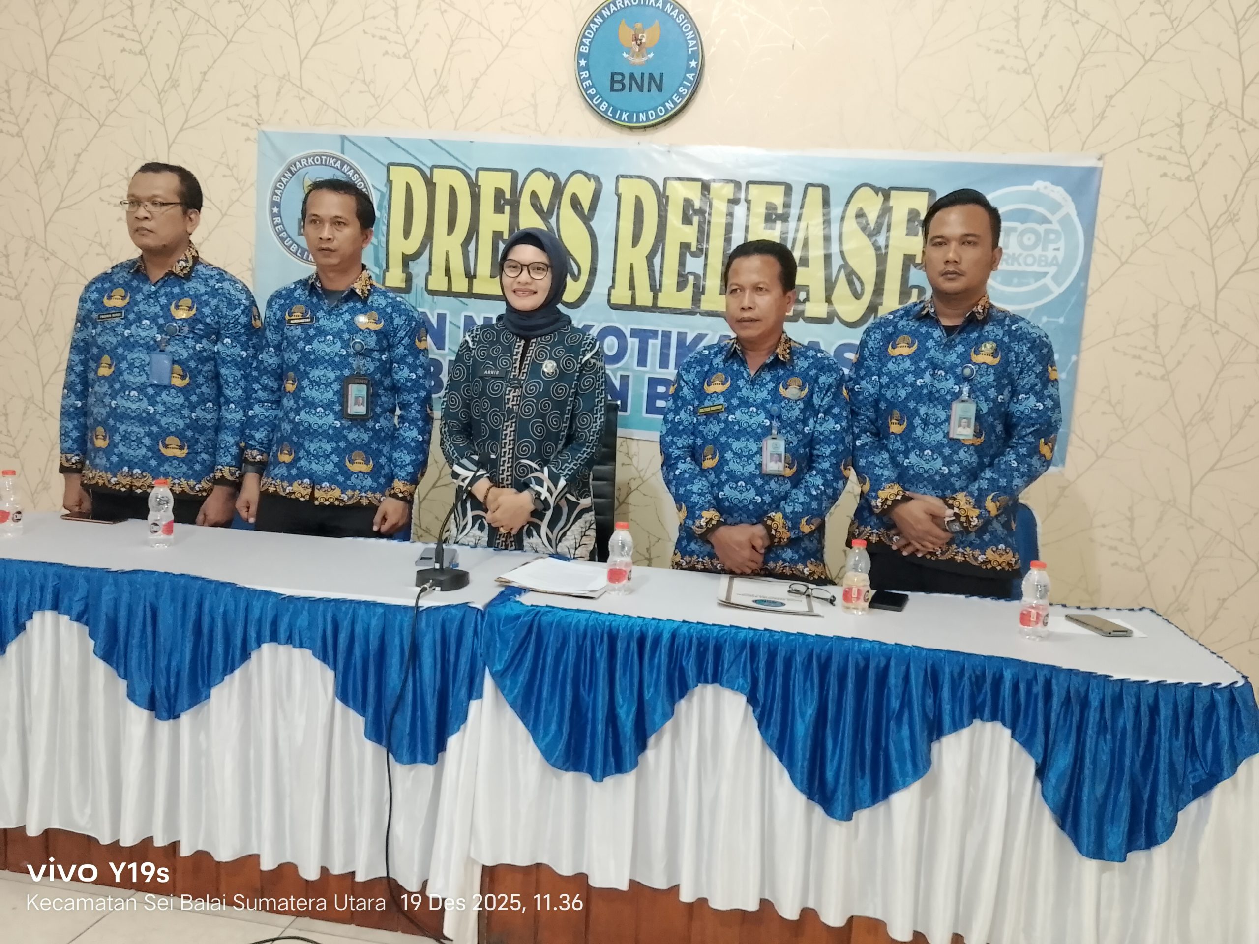 Komitmen memerangi penyalahgunaan dan peredaran gelap narkotika kembali ditegaskan Badan Narkotika Nasional Kabupaten (BNNK) Batu Bara dalam Press Release Akhir Tahun 2025 yang digelar di Aula Kantor BNN Kabupaten Batu Bara, Jumat (19/12/2025). Kegiatan ini menjadi refleksi sekaligus penegasan bahwa perang melawan narkoba di Kabupaten Batu Bara bukan sekadar slogan, melainkan kerja nyata yang menyentuh hingga ke akar rumput.