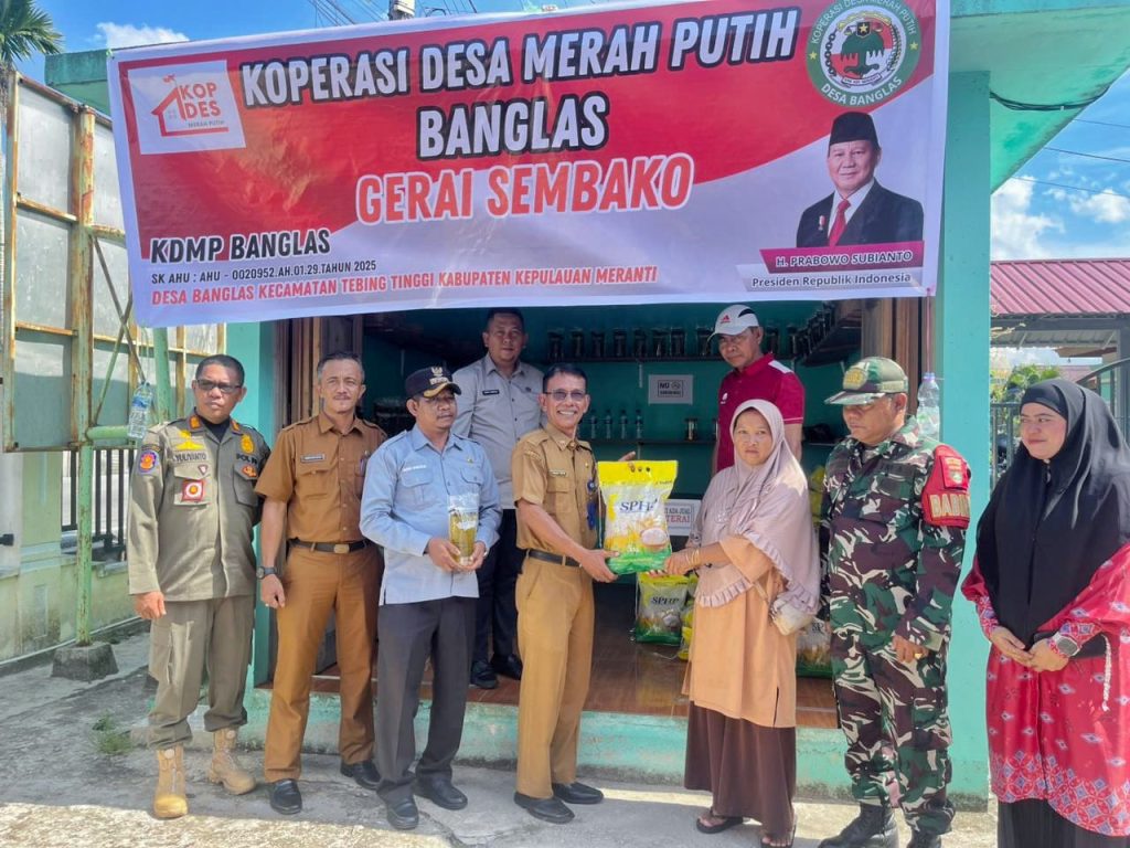 detik24jam. MERANTI – Bupati Kepulauan Meranti diwakili Kepala Dinas Koperasi, UMKM dan Tenaga Kerja, Tengku Arifin, meresmikan dimulainya pengoperasian Koperasi Desa Merah Putih (KDMP) yang pertama di Kabupaten Kepulauan Meranti di Desa Banglas, Selasa 28 Oktober 2025.