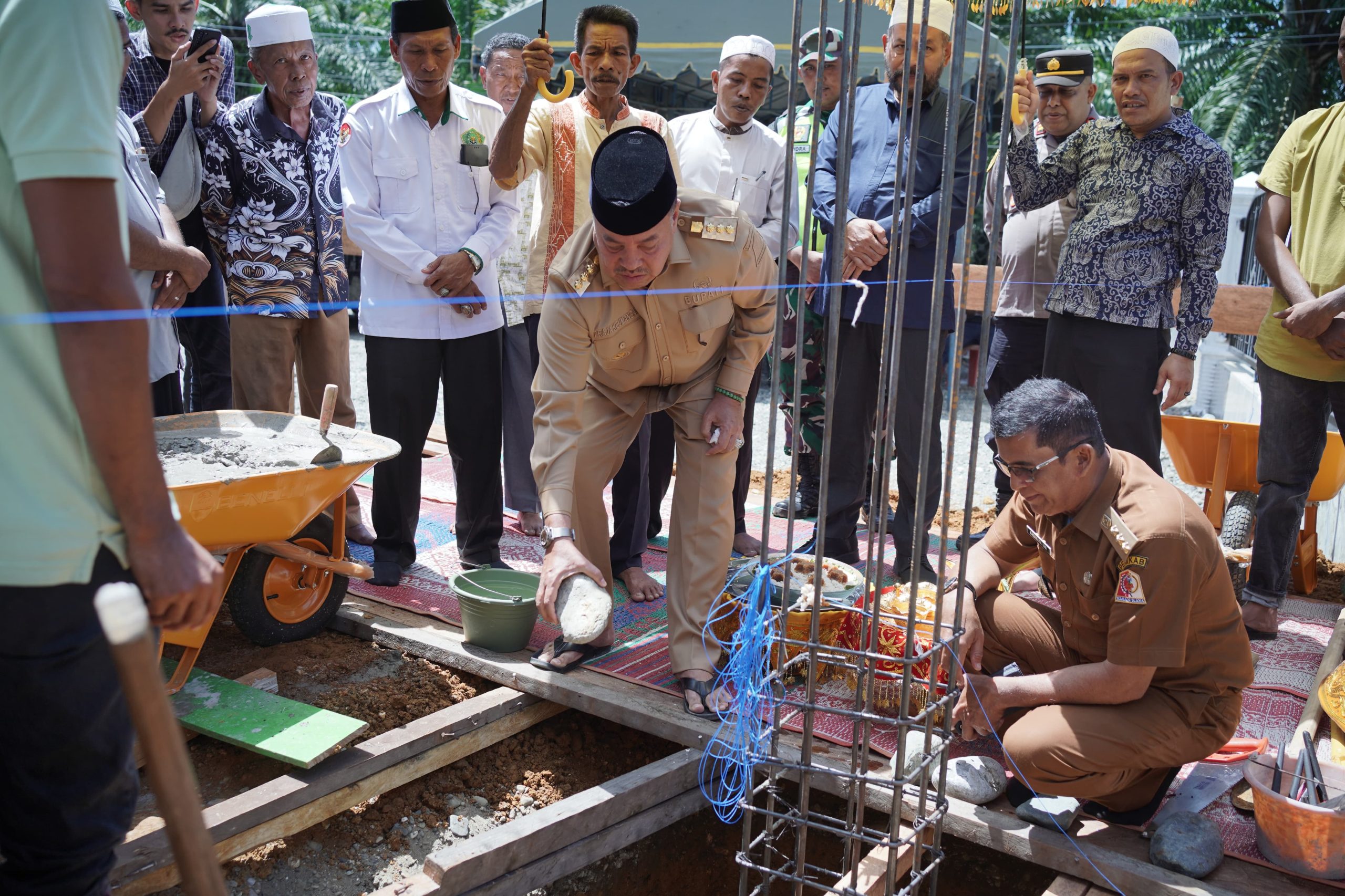 Suka Makmue – Bupati Nagan Raya, Provinsi Aceh, Dr. TR. Keumangan, S.H., M.H., secara resmi melakukan peusijuek dan peletakan batu pertama pembangunan Masjid Jamik Al-Muttaqin yang berlokasi di Gampong Gunong Reubo, Kecamatan Kuala, Kabupaten Nagan Raya, pada Senin (2/6/2025).