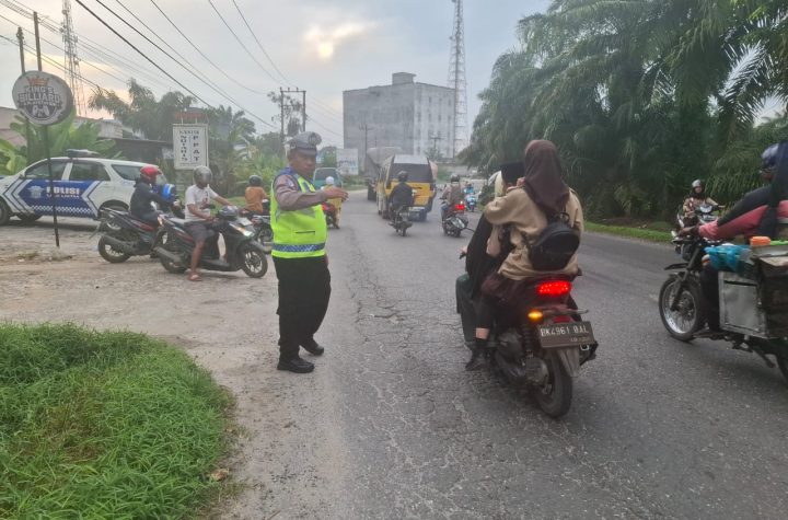 Personil Sat Lantas Polres Batu Bara melaksanakan pengaturan lalu lintas di beberapa lokasi di wilayah…