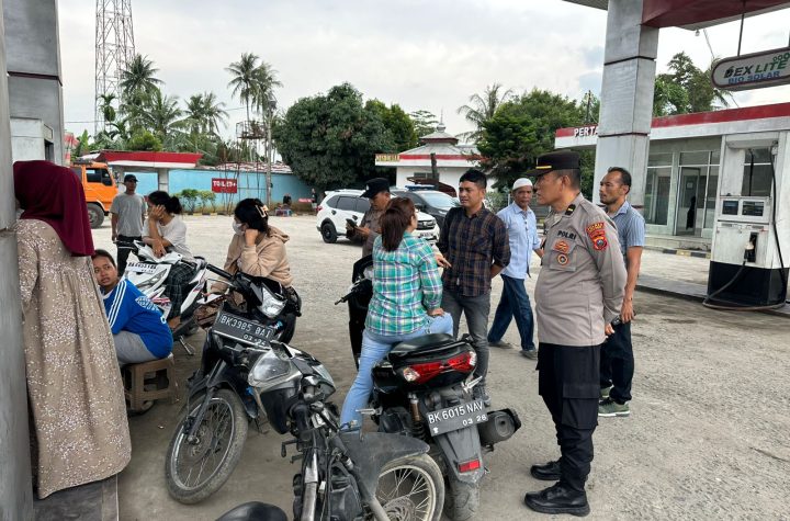 Personil Polsek Lima Puluh melaksanakan patroli dan monitoring di SPBU Desa Sumber Padi, Kecamatan Lima…