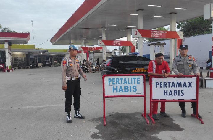 Personil Polsek Lima Puluh melaksanakan patroli dan monitoring di SPBU Desa Simp.gambus, Kecamatan Lima Puluh,…