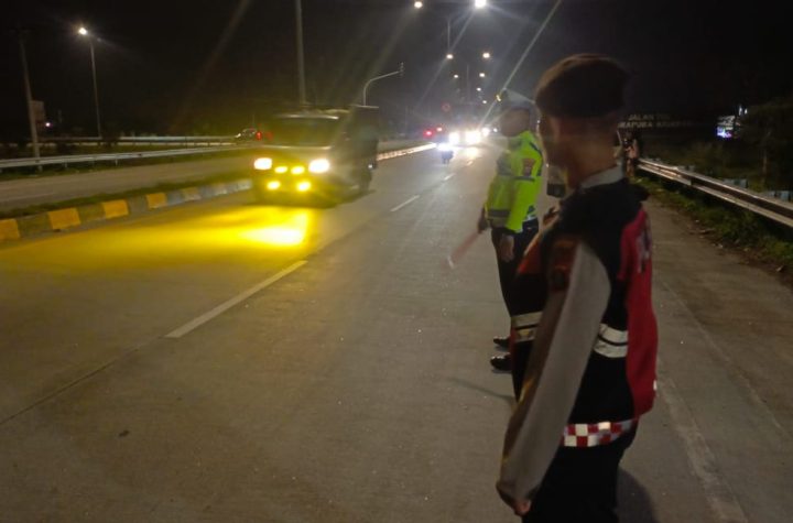 Personil Pos Yan 2 Exit Tol Lima Puluh Polres Batu Bara melakukan pemantauan situasi arus…