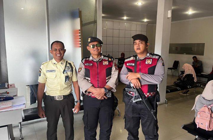 Personil Pos Pam II Sei Bejangkar Polres Batu Bara melakukan pengaturan malam di depan Pos…