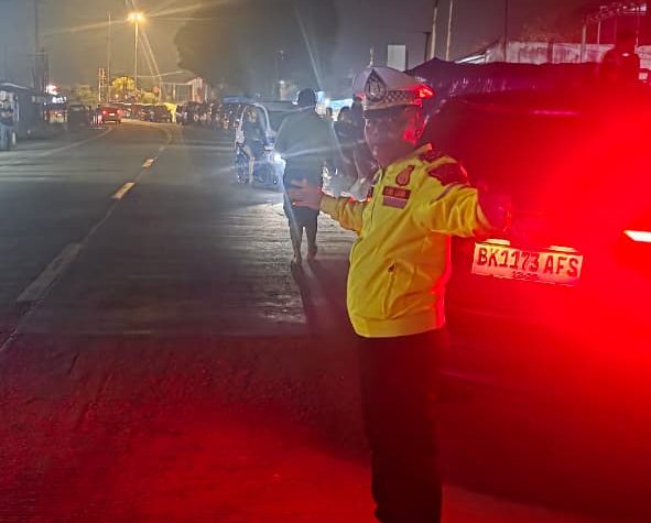Sat Lantas Polres Batu Bara melakukan patroli blue light di SPBU Sukaraja, Senin (01/12/2025). Patroli…
