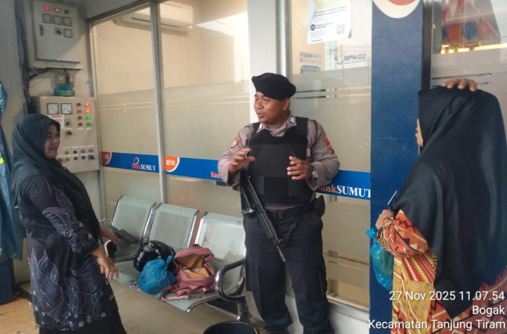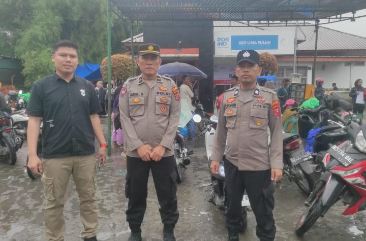 Personil Polsek Lima Puluh melaksanakan pengamanan penyaluran Bantuan Langsung Tunai (BLT) Kesra tahun 2025 di…