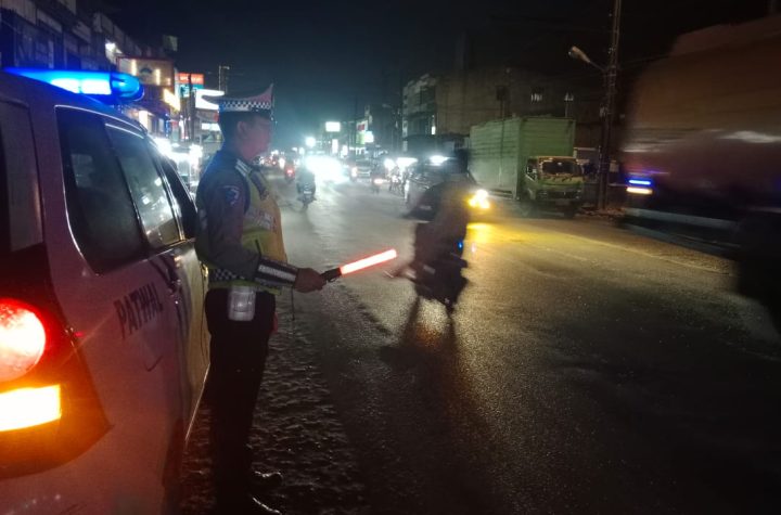 Personil Sat Lantas Polres Batu Bara melakukan patroli Blue Light di wilayah hukum Polres Batu…