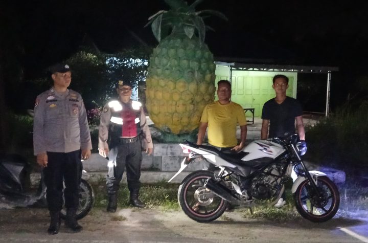 Personil Polsek Medang Deras melaksanakan patroli malam untuk mengantisipasi kejahatan, geng motor, begal, tauran antar…
