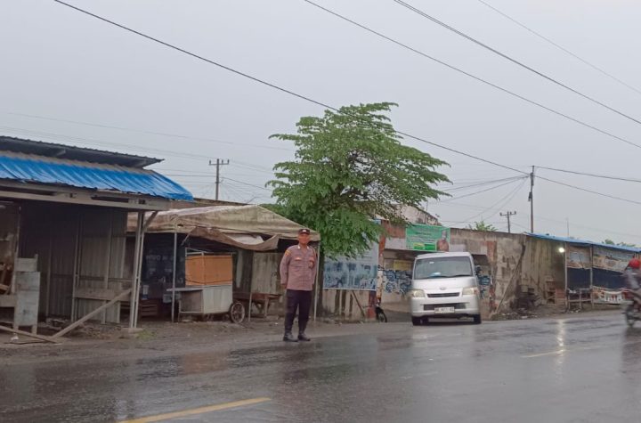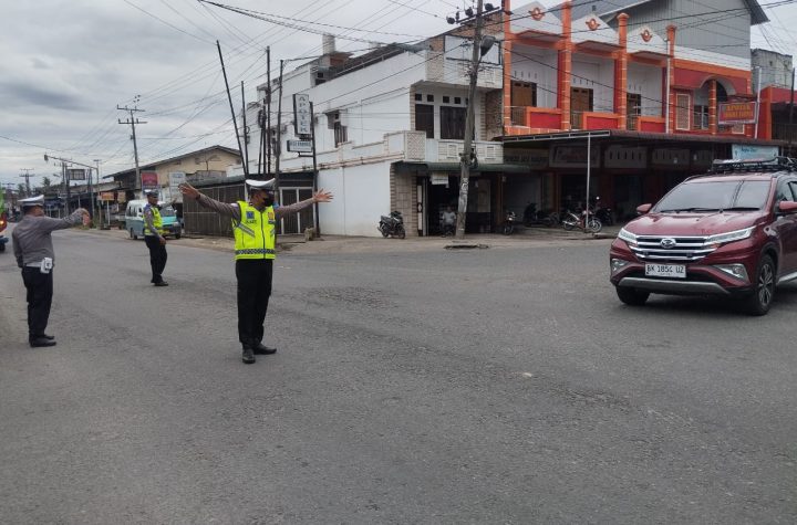 Personil Polsek Indrapura melaksanakan kegiatan pengamanan dan pengaturan lalu lintas di simpang Kerang Desa Sipare…