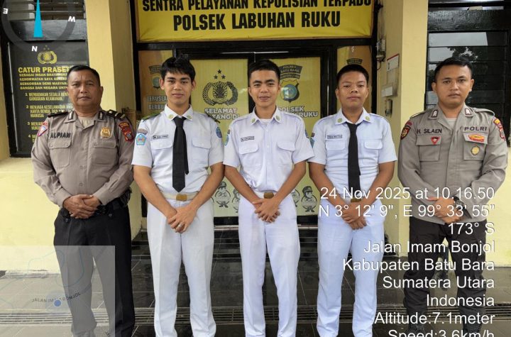 Kanit Binmas Polsek Labuhan Ruku, IPDA Alpian MS, menerima kunjungan dari siswa SMK 1 Talawi,…