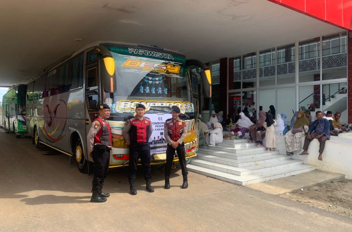 Personil Polres Batu Bara melaksanakan pengamanan keberangkatan jama’ah zikir akbar nasional di Kantor Bupati Batu…