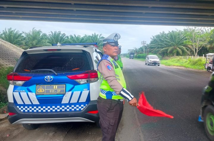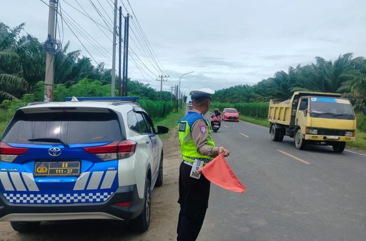 Personil Sat Lantas Polres Batu Bara melaksanakan kegiatan pengaturan arus lalu lintas (Gatur Siang) dan…