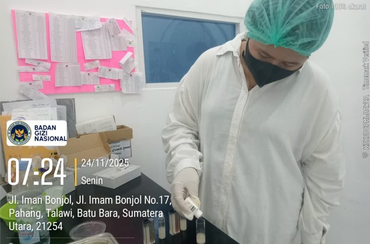 Personil Polres Batu Bara melakukan pemeriksaan safety food dalam rangka pendistribusian makanan bergizi di sekolah-sekolah…