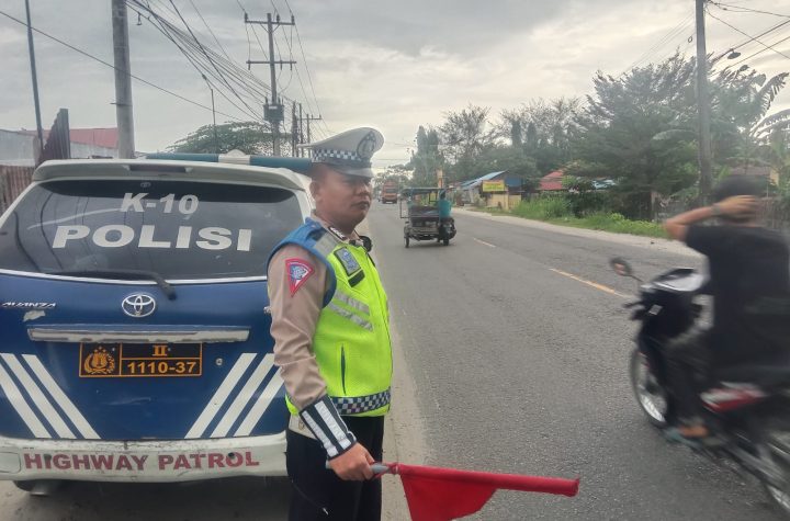Personil Sat Lantas Polres Batu Bara Polda Sumut melaksanakan kegiatan patroli kibas bendera dan pengaturan…