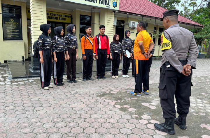 Kanit Binmas Polsek Labuhan Ruku, IPDA Apian MS, menerima kunjungan dari 15 siswa-siswi SMK 1…