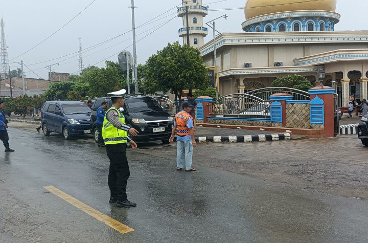 Personil Sat Lantas Polres Batu Bara Polda Sumut melaksanakan kegiatan pengaturan lalulintas di lokasi mesjid…