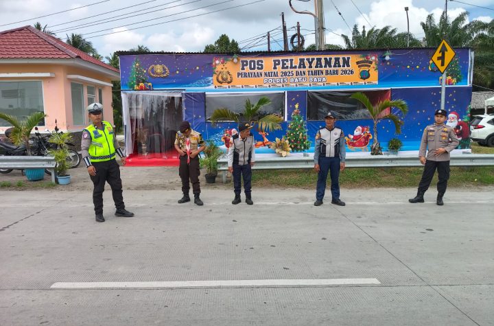Personil Polsek Labuhan Ruku melaksanakan pengamanan Hari Natal Tahun 2025 dan Tahun Baru 2026 di…