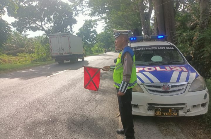 Sat Lantas Polres Batu Bara melaksanakan patroli dan mengibarkan bendera merah di lokasi rawan di…