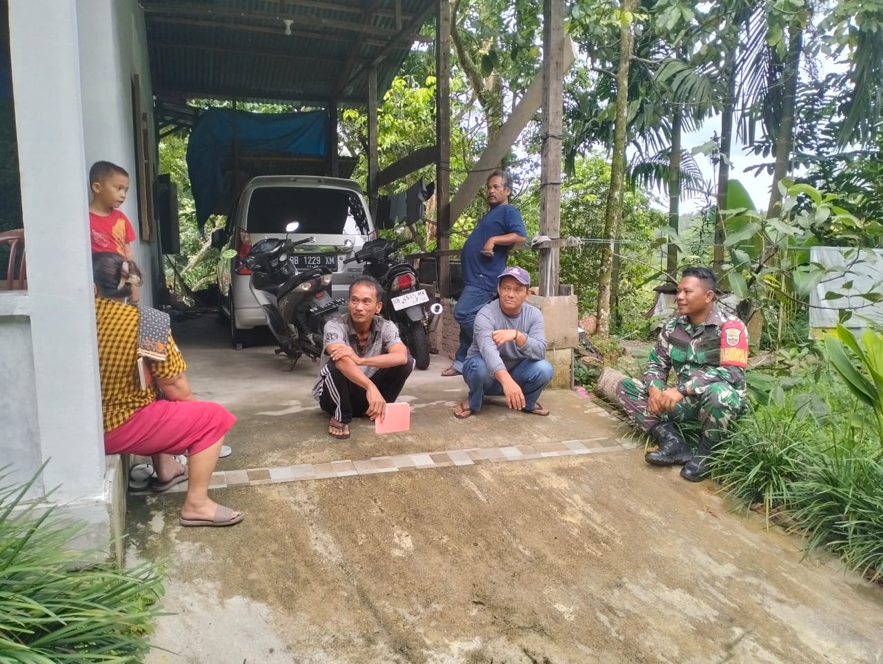TAPTENG_ Babinsa Koramil 05/Kolang, Serda Ius Pasaribu melaksanakan kegiatan Komunikasi Sosial (Komsos) dengan warga binaan di Desa Simaninggir, Kecamatan Sitahuis, Kabupaten Tapanuli Tengah. Minggu (10/08/2025)