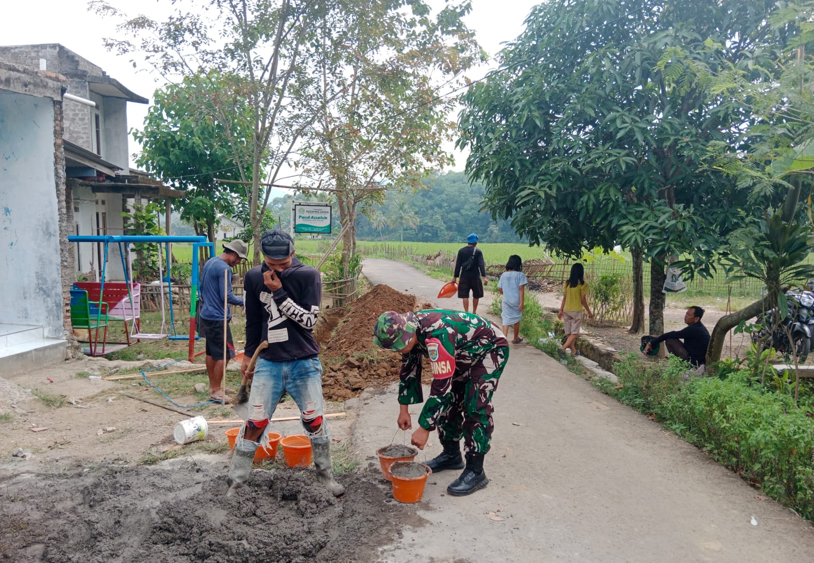 Detik24jam.com – Tanjungsari Botim – Serma, Nana Supriatna anggota TNI Koramil 0621-08 Cariu Tanjungsari laksanakan giat Karyabakti bersama warga masyarakat untuk membangun Tembok penahan tanah (TPT) di Kampung Cimapag RT.02/01 Desa Buanajaya Kecamatan Tanjungsari – Bogor Timur pada 4 Desember 2024.