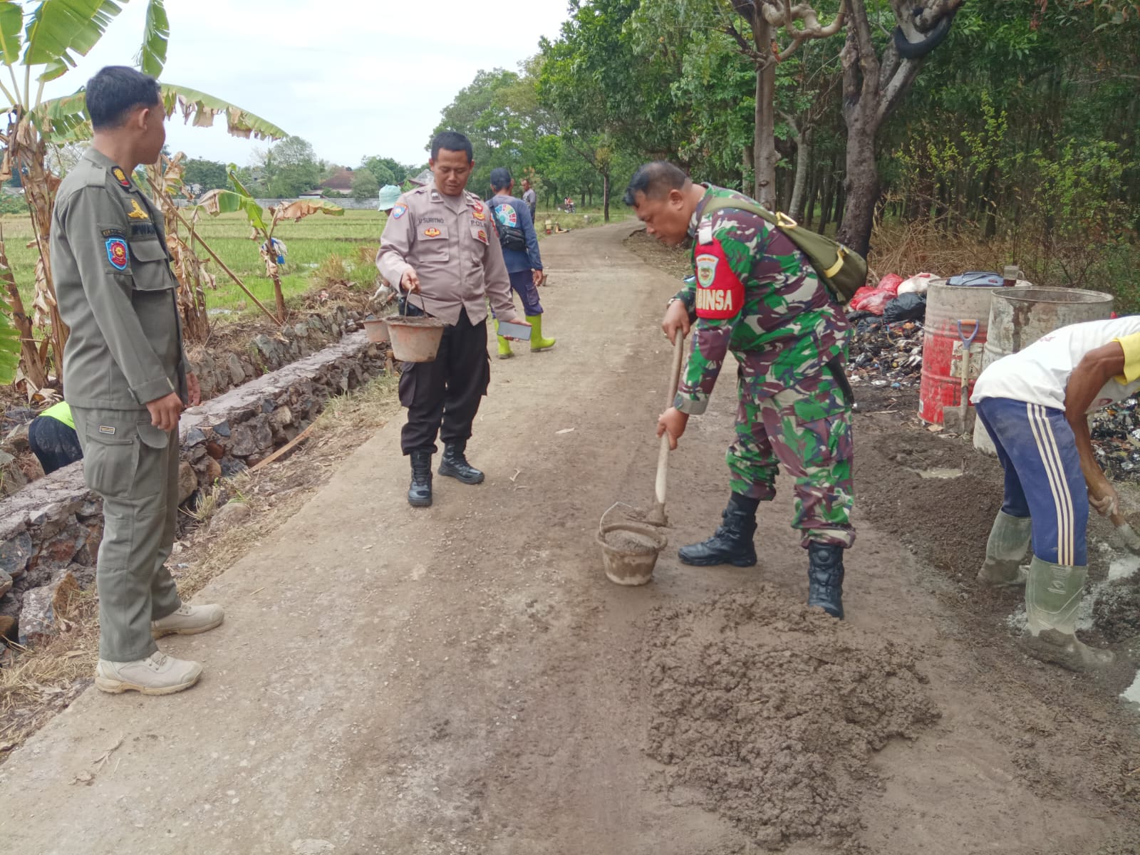 “Bukan hanya warga yang terlibat dalam pembangunan namun ada anggota TNI Koramil 0621-08 Cariu Tanjungsari. Kopka Darul Tahkik Babinsa Desa Tegal Panjang nampak sedang membawa coran saat ditanya awak media – Saya membantu pengerjaan pembangunan jalan betonisasi ini murni inisiatif saya sebagai Babinsa Desa Tegal Panjang, tentu ingin yang terbaik dan juga untuk memotivasi masyarakat dalam giat Karya Bakti.”Ungkapnya (23/9).