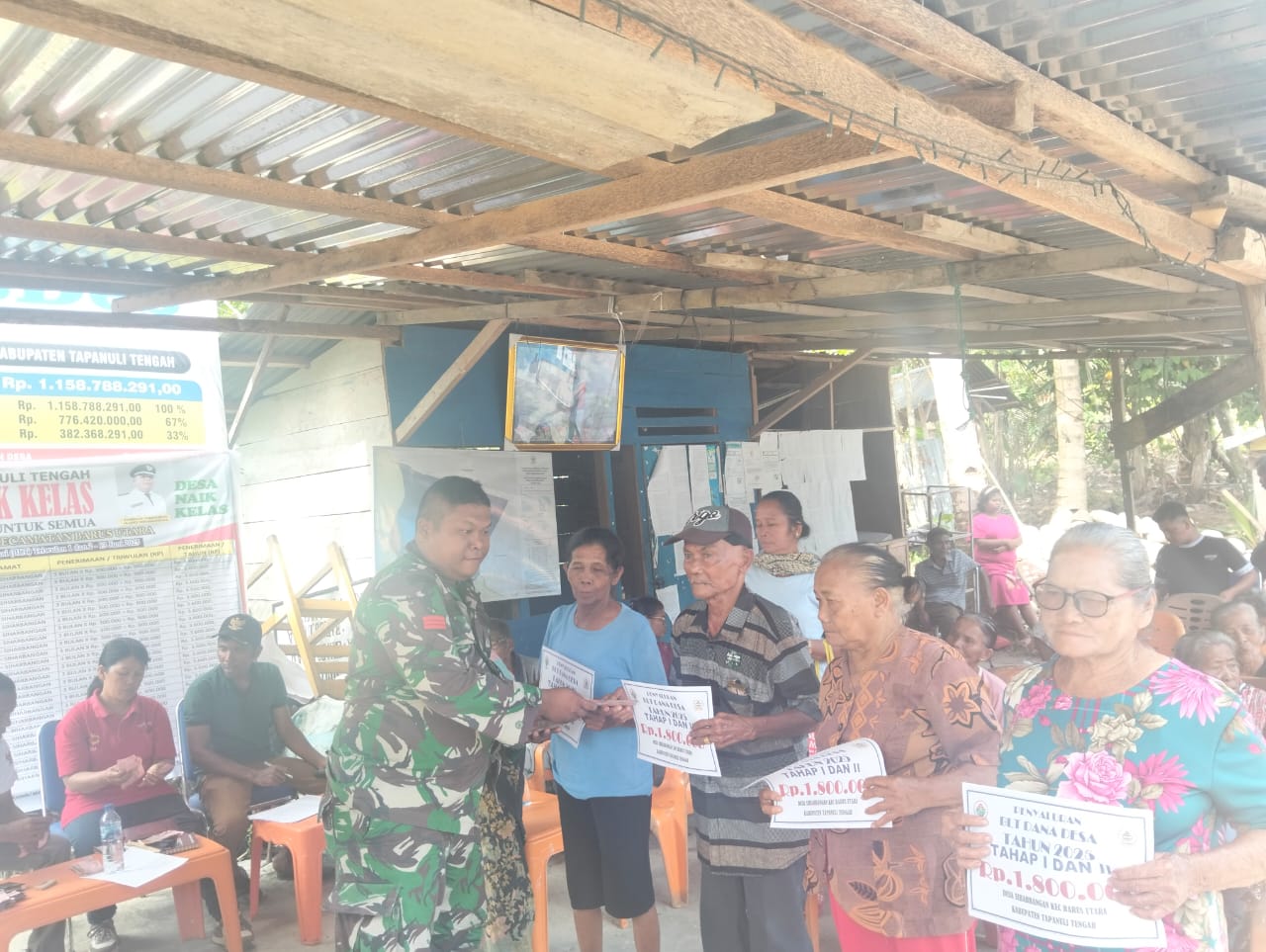 TAPTENG_ Babinsa Koramil 01/Barus Kodim 0211/TT,Praka Azwan Ryanda Hasibuan menghadiri kegiatan Pemberian Bantuan Langsung Tunai ( BLT ) Dana Desa tahun 2025 di desa Siharbangan, kecamatan Barus Utara,kabupaten Tapanuli tengah, Senin (30 /Juni / 2025 )