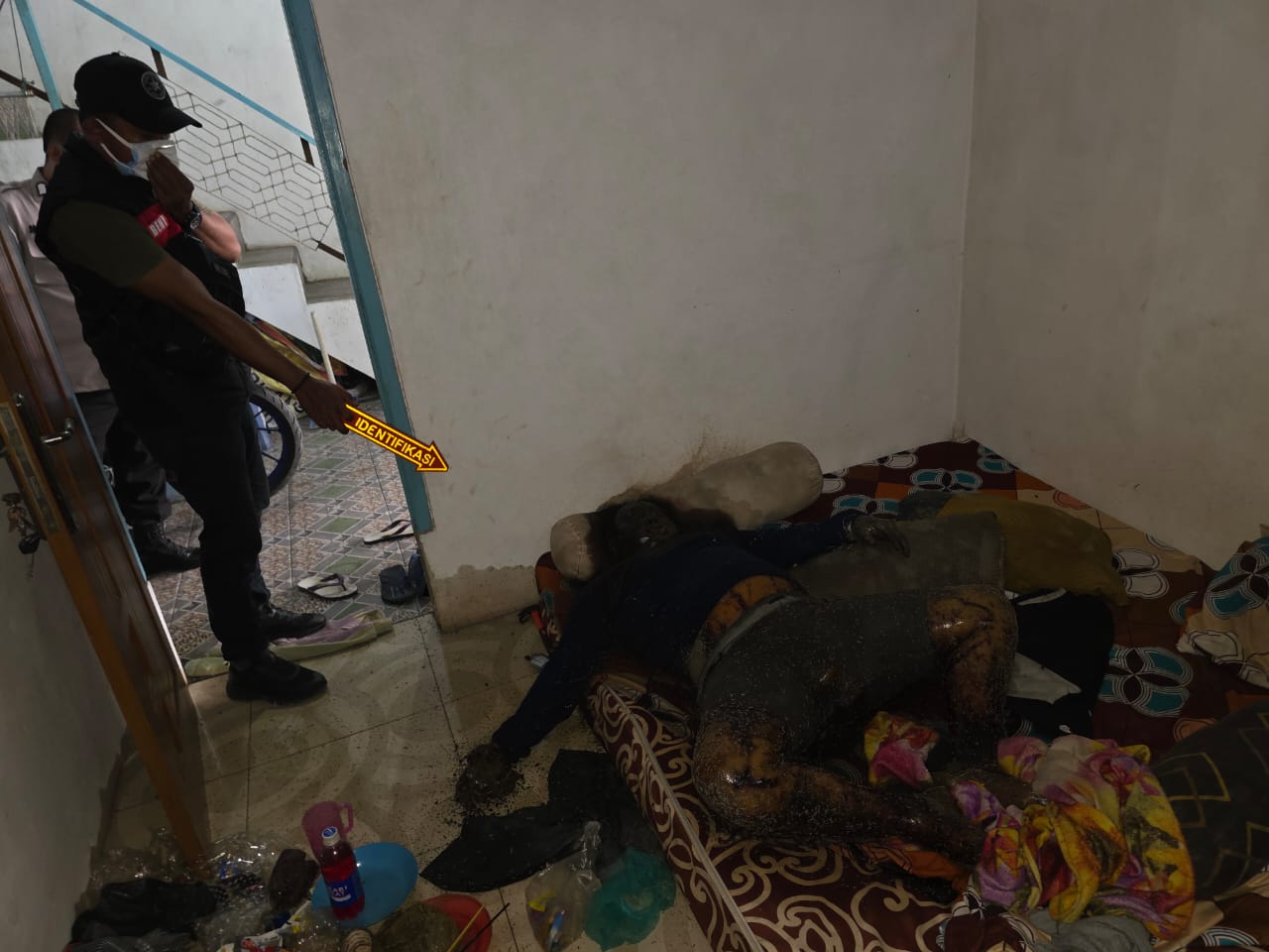 Sesampainya di kamar kos, saksi mencium bau busuk dari kamar korban,karena posisi pintu kamar korban sedikit terbuka dia langsung masuk dan menemukan korban sudah terbujur kaku dan mengeluarkan bau tak sedap dari badannya