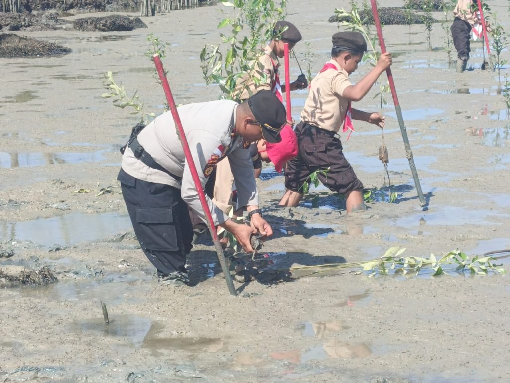“Kami memberikan edukasi sederhana tentang cara menjaga kebersihan, mengelola sampah dari rumah, hingga menanam pohon sebagai bagian dari gaya hidup ramah lingkungan. Penanaman mangrove ini juga penting untuk mencegah abrasi pantai,” terang Ipda Dongan.