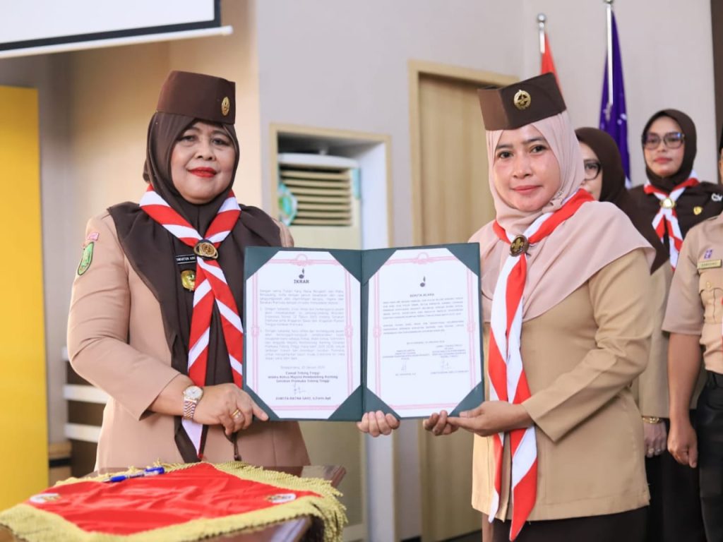 detik24jam. MERANTI – Ketua Kwartir Cabang (Kwarcab) Gerakan Pramuka Kepulauan Meranti, Hj. Ismiatun, melantik Majelis Pembimbing Ranting (Mabiran), Pengurus Kwartir Ranting (Kwarran), serta Lembaga Pemeriksa Keuangan (LPK) Kwartir Ranting Gerakan Pramuka Tebingtinggi Masa Bakti 2025–2028.