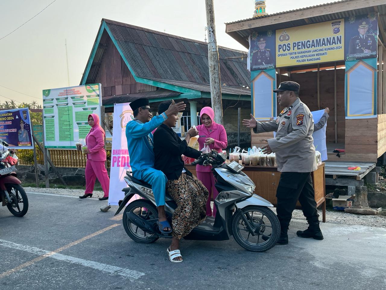 Kegiatan pembagian takjil diikuti oleh, Kapolsek Rangsang Ipda Anton Hilman SH, MH, beserta anggota polsek, dan Bhayangkari ranting Rangsang yang kompak membagikan takjil dengan senyuman penuh kebahagiaan.