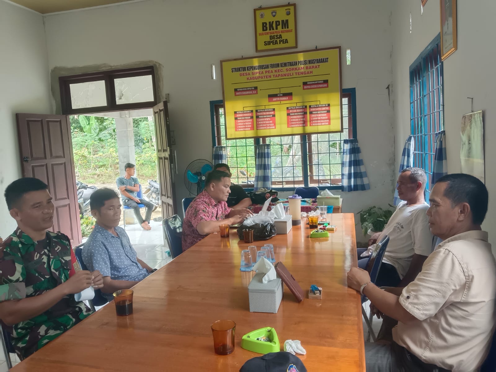 Tapteng_Guna meningkatkan hubungan kerja yang baik di wilayah binaan Babinsa Koramil 02/Sorkam, Serda.Jhin Banjarnahor melaksanakan Komunikasi Sosial(Komsos)Bersama Kepala Desa dan Perangkat bertempat di Kantor desa Sipeapea Kc.Sorkam Barat. Kb.Tapanuli Tengah Minggu.(04/05/2025)