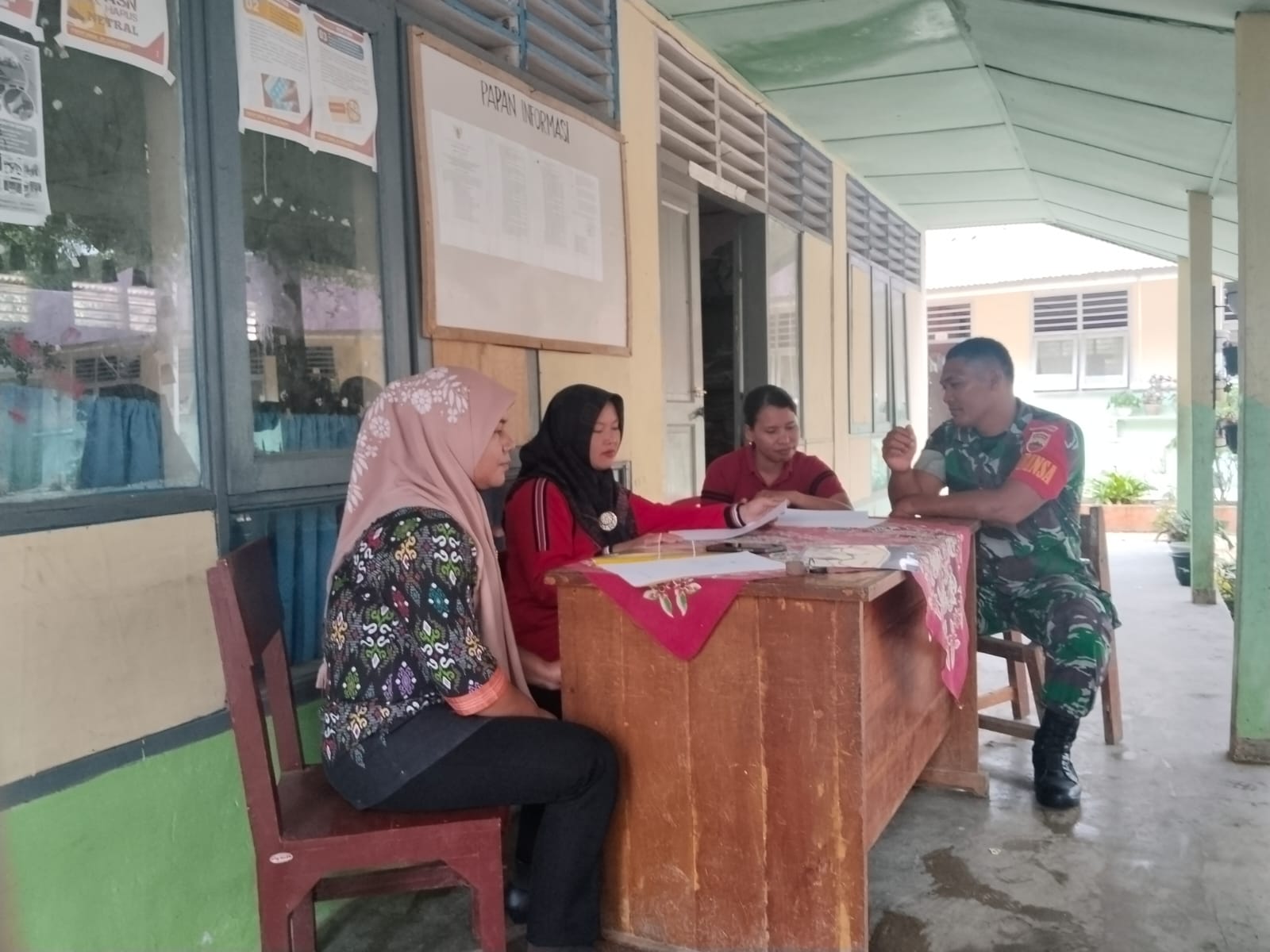 Tapteng-Babinsa Koramil 04/PS Serda Sangkot A Siregar Melaksanakan kegiatan Komsos Dengan para guru SDN 153077 Pulo Pakkat, kecamatan Sukabangun Kab.Tapanuli Tengah,Jum’at (11/04/2025).