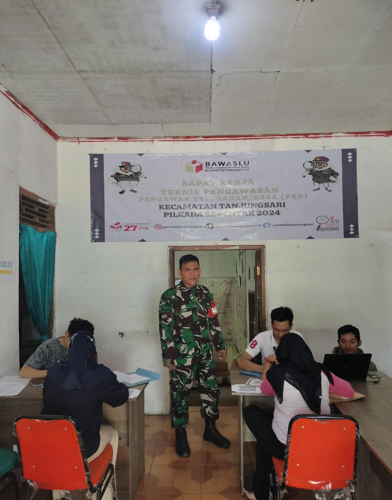 Ya kami sebagai Babinsa dan juga Bhabinmas Desa Sirnasari hari ini melaksanakan Komsos bersama pihak Bawaslu Kecamatan Tanjungsari, Kami bersilaturahmi membahas yang terkait Pilkada utamanya menyangkut Keamanan ketertiban wilayah karena itu memang tugas kami sebagai aparat.”Tuturnya (25/10).