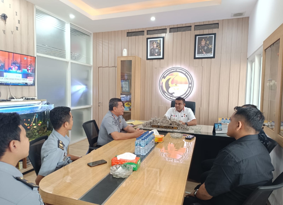 Kunjungan Kalapas Selong, Ahmad Sihabudin diterima langsung oleh Direktur Reserse Narkoba Polda NTB, Kombes Deddy Supriadi di ruang kerjanya yang didampingi oleh Kasubdit 1, 2 dan 3.