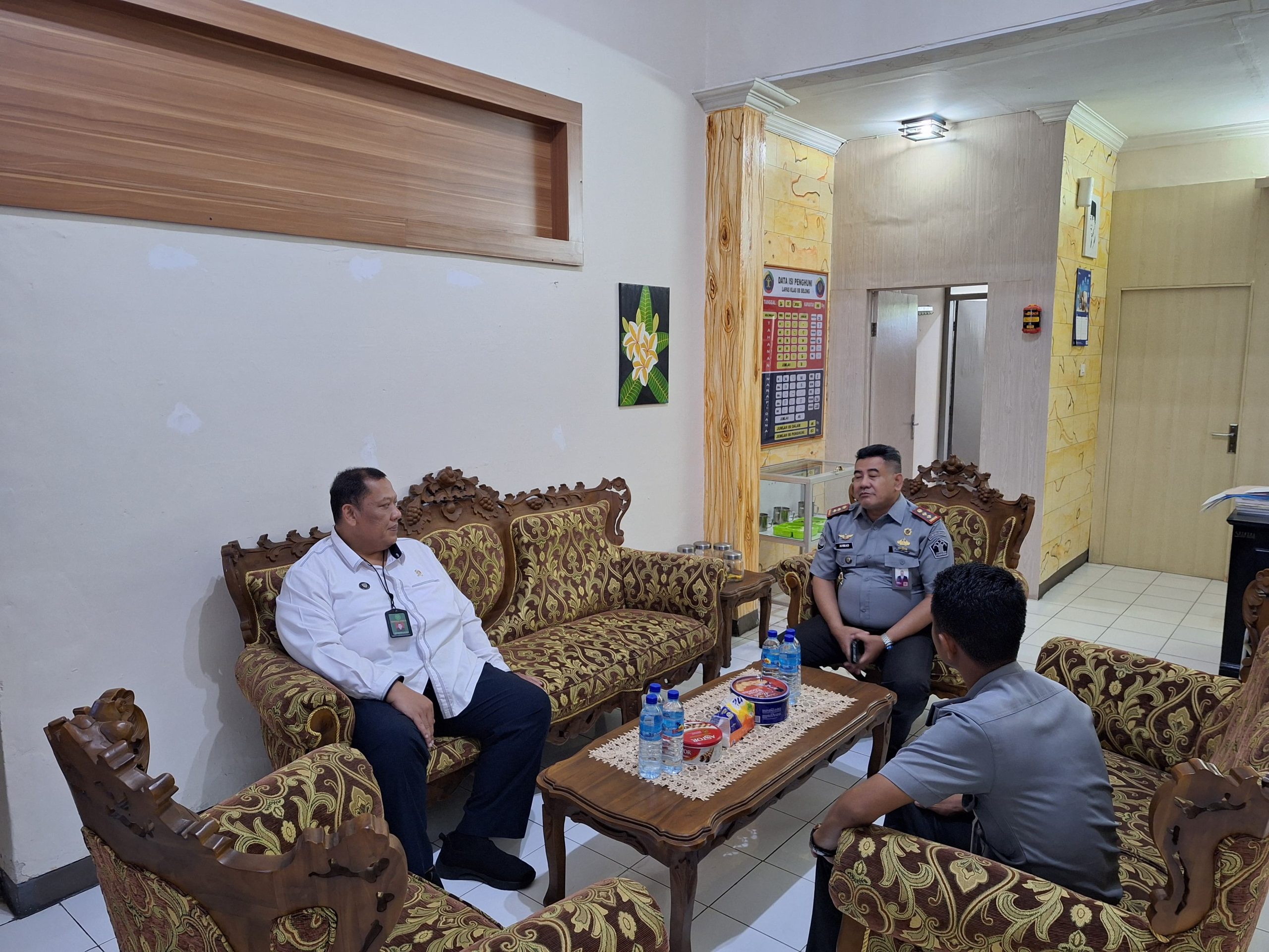 Lombok Timur – Kepala Lembaga Pemasyarakatan Kelas IIB Selong Kanwil Direktorat Jenderal Pemasyarakatan NTB, Ahmad Sihabudin didampingi Kasubsi Registrasi dan Bimkemas menerima kunjungan Ketua Pengadilan Negeri Selong, Ida Bagus Oka Saputra M. di ruang kerjanya, Senin (26/05).