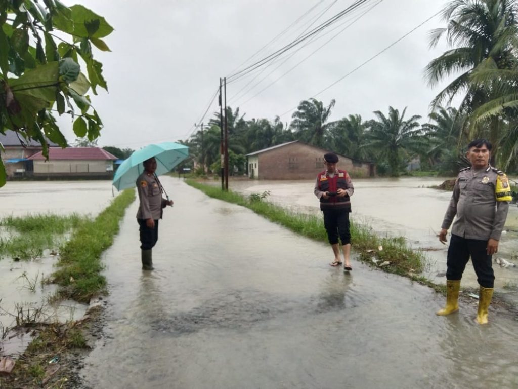 Kanit Samapta Polsek Indrapura, IPDA GOMGOMAN SINAGA, bersama personil Polsek Indrapura melakukan patroli dan monitoring wilayah pemukiman warga masyarakat yang tergenang air akibat curah hujan yang tinggi di wilayah hukum Polsek Indrapura, Kamis (27/11/2025) pukul 14.30 WIB.