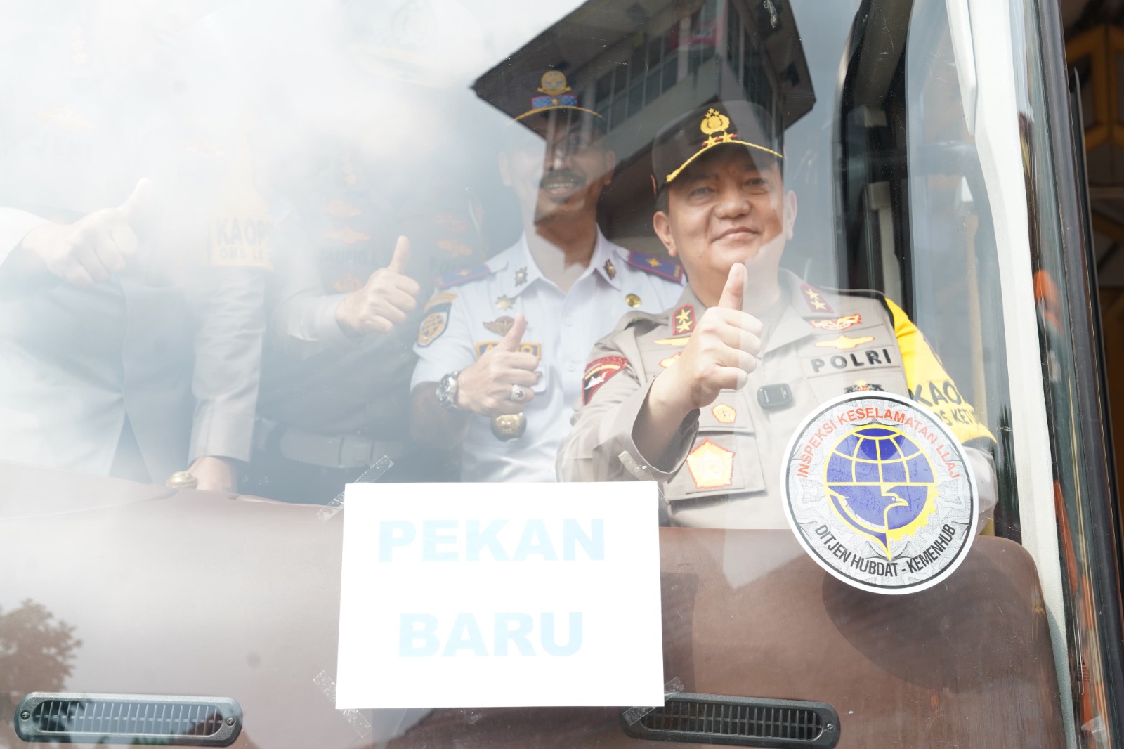 “Tadi saya dibawa memasang stiker disalah satu bus dan ini merupakan bentuk kendaraan tersebut lulus verifikasi (ram cek kelayakan kendaraan)” kata Kapolda