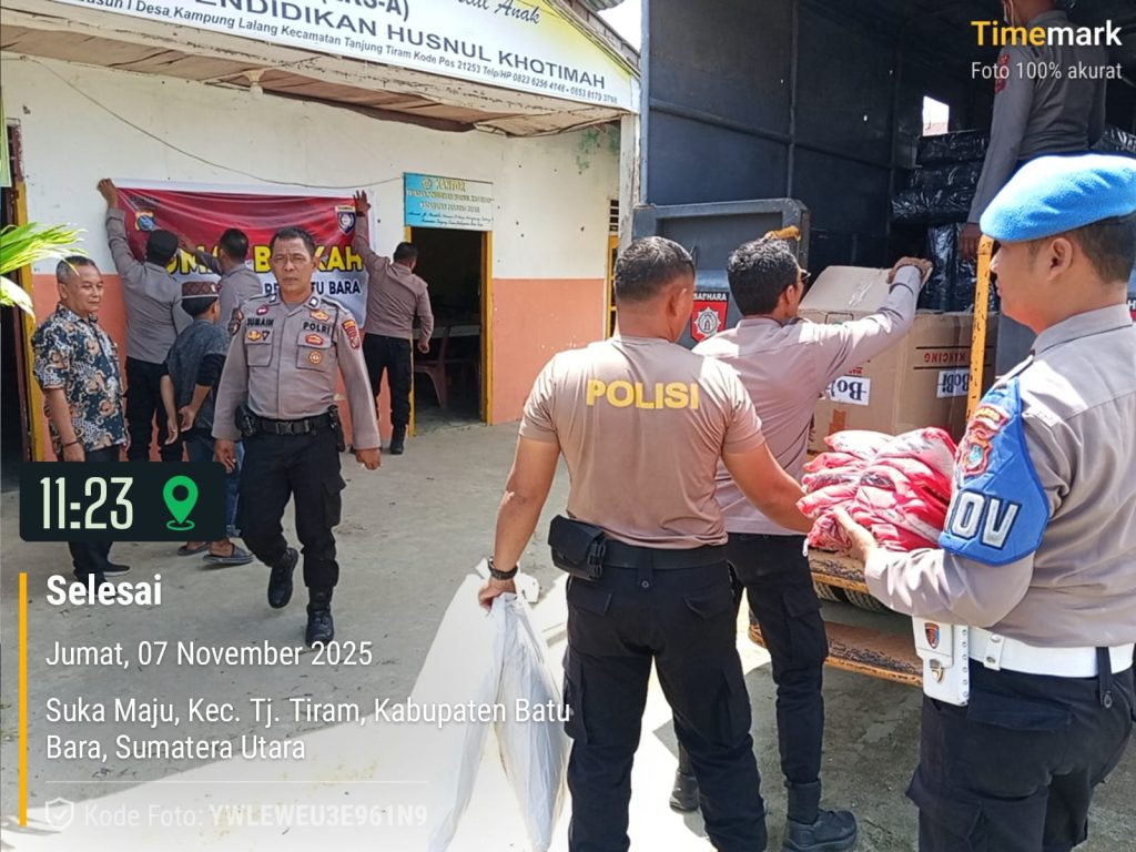 Kapolres Batu Bara, AKBP Doly Nelson H. H. Nainggolan, S. H., M.H., melakukan kegiatan Jum’at Berkah dengan memberikan bantuan sosial kepada Yayasan Panti Asuhan Husnul Khotimah di Dusun 1 Desa Lalang, Kecamatan Tanjung Tiram, Kabupaten Batu Bara, pada Jumat, 7 November 2025.