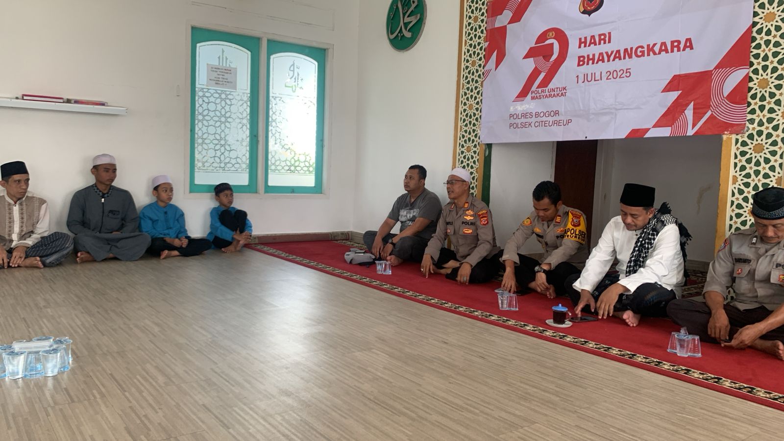 Detik24jam.com- Citeureup|Polres Bogor, Kapolsek Citeureup Polres Bogor Polda Jabar, Akp Ari Nugroho,S.I.K, M.S.I dan Anggota lainnya serta Anak Yatim sekira jam 08.00 Wib – saat ini Selesai, Melaksanakan Kegiatan Do’ a bersama bersama anak Yatim untuk keselamatan dalam bertugas serta menjelang HUT Bhayangkara 1 Juli 2025 di Mushola At Taubah Polsek Citeureup, Jum’at (13/06/2025).
