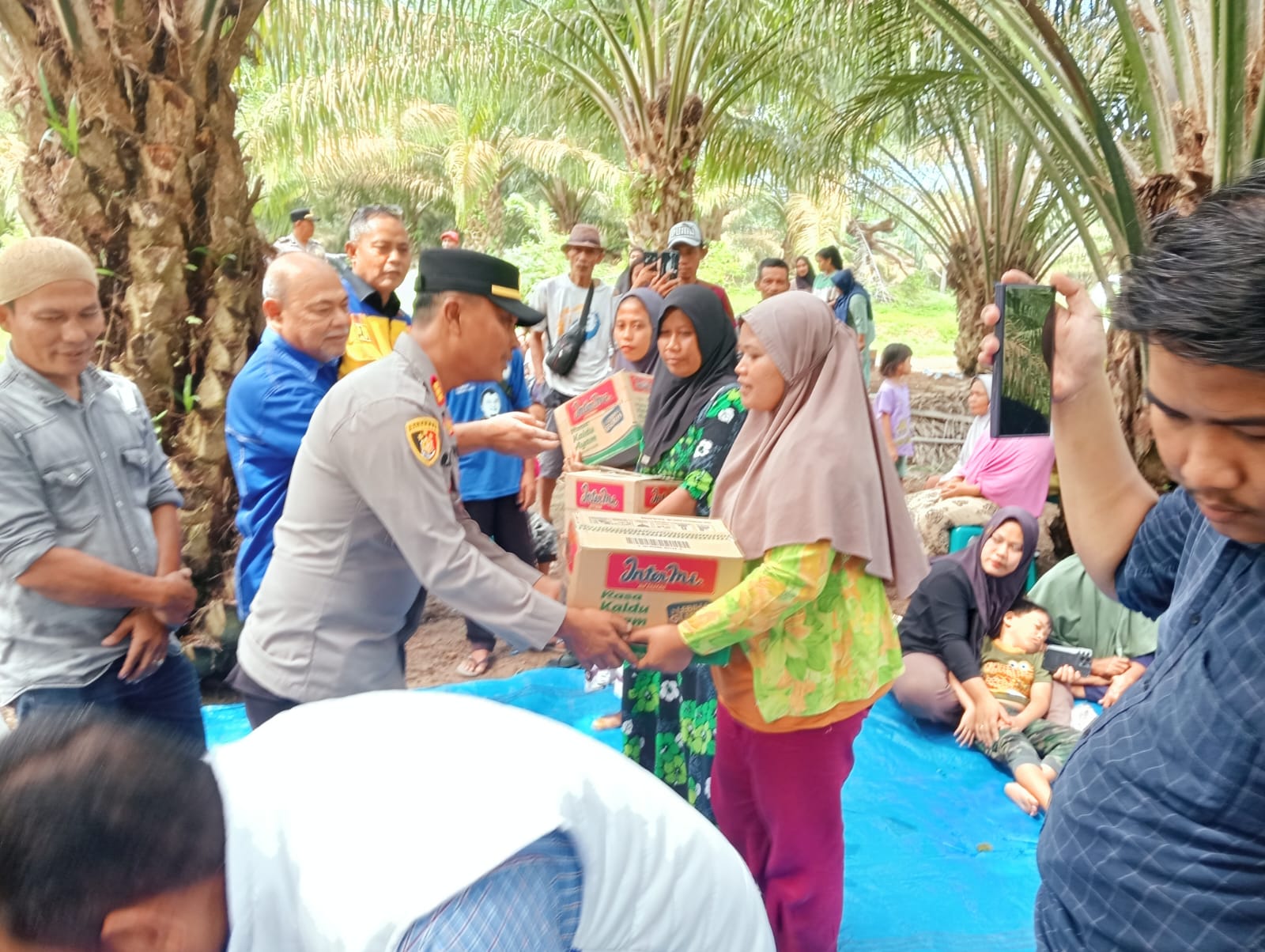 Kapolsek Indrapura, AKP REYNOLD SILALAHI S.H., bersama personil Polsek Indrapura, membagikan bantuan sosial (Bansos) berupa sembako kepada warga masyarakat Dusun IX Pulo Rotan, Desa Kandangan, Kecamatan Laut Tador, Kabupaten Batu Bara, Sabtu (29/11/2025).